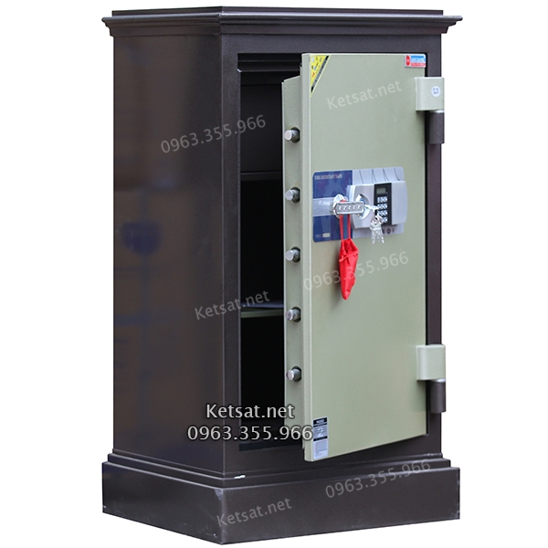 + Chất liệu: khung vỏ thép 2 lớp + vật liệu chống cháy cao cấp tạo thành một khối vững chắc cảm giác như được đúc liền khối (khác biệt với két đổ cát thông thường)