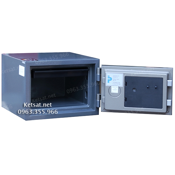 . Kết cấu cánh cửa dày, thép 3 lớp: 1 lớp trong và 2 lớp ngoài ruột đúc đặc vật liệu chống cháy cao cấp tiếu chuẩn quốc tế như: CE, ISO, SP, JIS.. cùng với hệ thống chốt an toàn, thẩm mỹ ăn sâu vào thân két khi đóng cửa tăng độ chắc chắn, an toàn, chống cạy phá