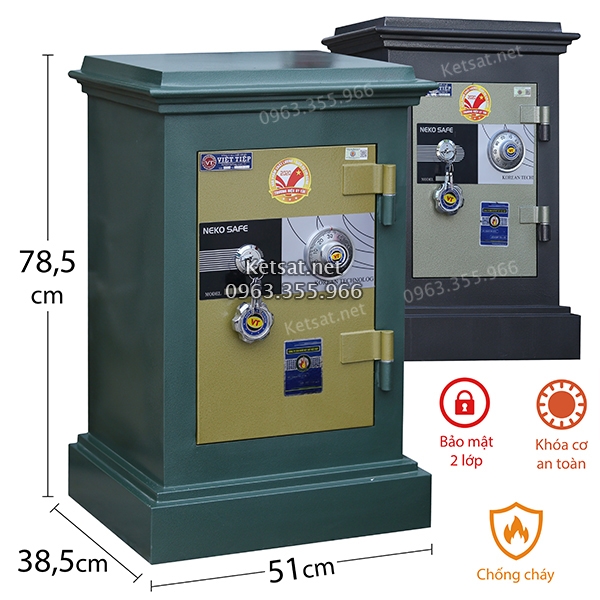 - An toàn - chống trộm: Két được trang bị 01 ổ khóa chìa 4 cạnh chống sao chép + 01 khóa mã cơ siêu bền có nhiều rãnh giả chống dò mã.