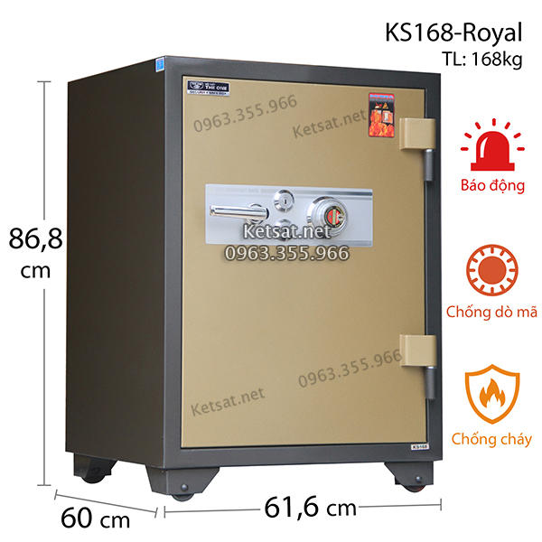 Thông tin sản phẩm Két sắt Hòa Phát The One xuất khẩu KS168-Royal cơ chống dò mã (Két sắt KS168K2C1KCX lắp khóa chống xoay, còi báo động)
