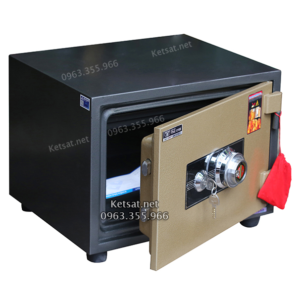 - Két được làm bằng thép không gỉ 2 lớp; thân két + cánh cửa được đổ đặc bằng chất liệu chống cháy cao cấp
