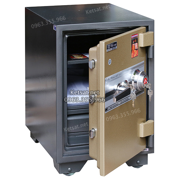 - Két được làm bằng thép không gỉ 2 lớp; thân két + cánh cửa được đổ đặc bằng chất liệu chống cháy cao cấp