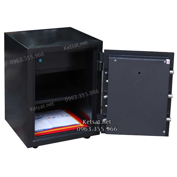 - Nội thất bên trong két được thiết kế rất khoa học với 1 đợt chia ngăn để giấy tờ + 1 ngăn phụ có khóa chìa là nơi cất giữ đồ quý giá rất lợi.
