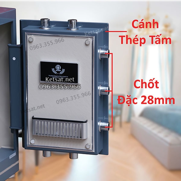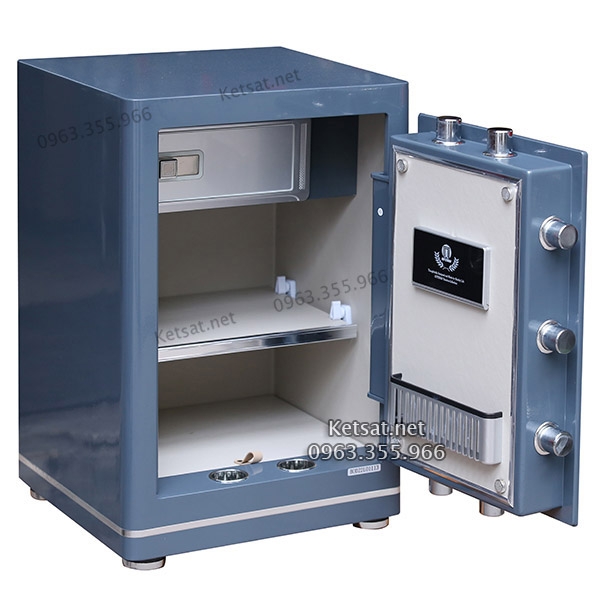 Két được bảo mật bằng khóa mã vân tay cao cấp kết hợp mật mã điện tử cảm ứng sang trọng – (Mở két không cần chìa khóa – loại bỏ nỗi lo “mất chìa khoá” như một số loại két khác)