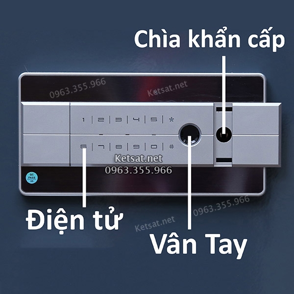 - Khóa mã vân tay kết hợp điện tử; có App điện thoại quản lý - mở két