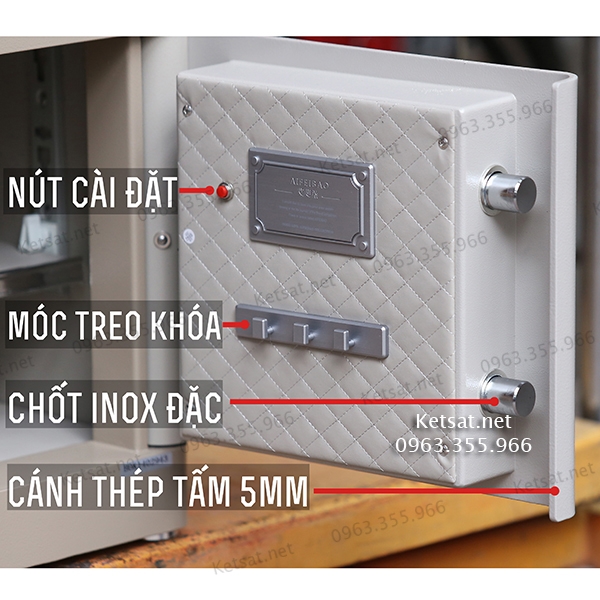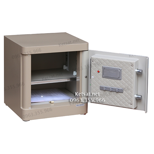 - An toàn - chống cạy phá tốt nhất: Không giống như két tạo hộp đổ ruột thông thường - Két Aifeibao Kết cấu thép nguyên tấm - Thân vỏ thép tấm 4mm; khung mặt và cánh cửa 5mm ; bản lề cối âm bên trong - góc mở rộng; chốt 21mm. Có thể bắt ốc vào tường chống di chuyển.