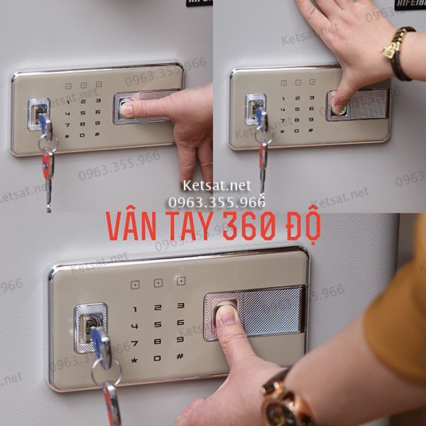 - Mở khóa vân tay 360 độ, thuận tiện, dễ dàng mở két từ mọi góc cạnh