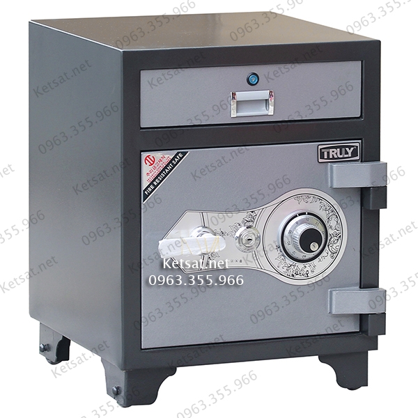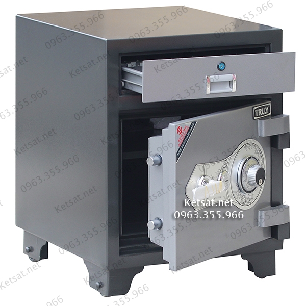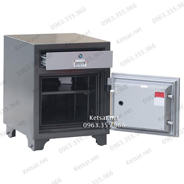 *Đây là dòng két sắt chống cháy thu ngân chuyên dụng cho ngân hàng, tiệm vàng. Phía trên có ngăn kéo với 8 khay chìa và kẹp giữ tiền. Phía dưới là cánh mở kết hợp mã số cơ bền bỉ cùng khóa chìa nhập khẩu.